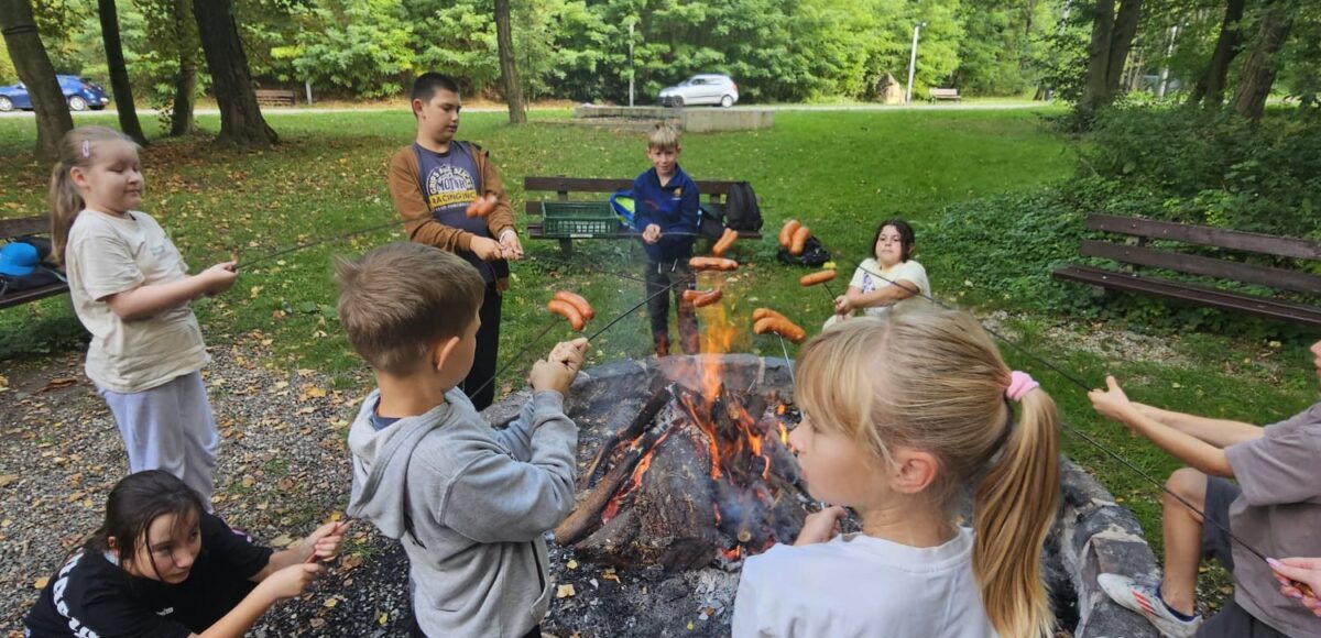 12 września 2025 r. uczniowie klasy III, wraz z wychowawcą oraz rodzicami, uczestniczyli we wspólnym ognisku zorganizowanym w Parku Rozkówka. Podczas spotkania pieczono kiełbaski i częstowano się przygotowanymi wcześniej przekąskami. Po części biesiadnej uczniowie brali udział w różnorodnych grach i zabawach ruchowych na świeżym powietrzu. Nie zabrakło śpiewu, rozmów i radosnego gwaru przy ognisku. Sprzyjająca pogoda oraz przyjazna atmosfera stworzyły doskonałe warunki do integracji. Dzięki temu spotkaniu uczniowie spędzili miło czas, wzmocnili klasowe więzi i wrócili do domów w doskonałych nastrojach.